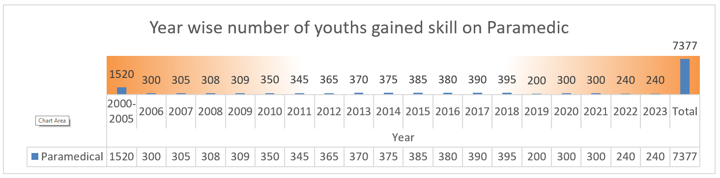 Out of them 25% gained skill on Medical Technology, 6% on Medical Assistant, 13% on nursing, 2% on nurse and Midwifery, 53% on Paramedical and 1% on Care Giving.